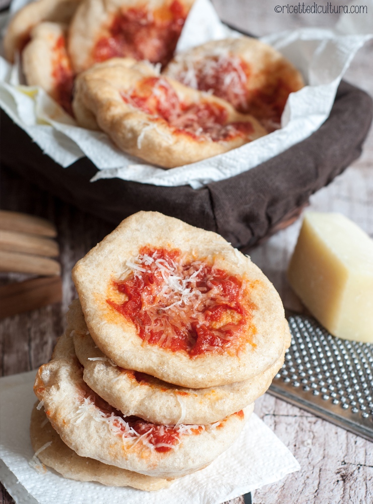 La versione per me più classica, che preparavano le mie zie di Napoli, è quella in cui si condiscono le pizzelle calde con salsa di pomodoro al basilico e formaggio grattugiato (io preferisco il pecorino); vi segnalo un’altra farcitura sfiziosa con fettine di formaggio di capra semistagionato e fettine di pera, completando con una spolverata di pepe.