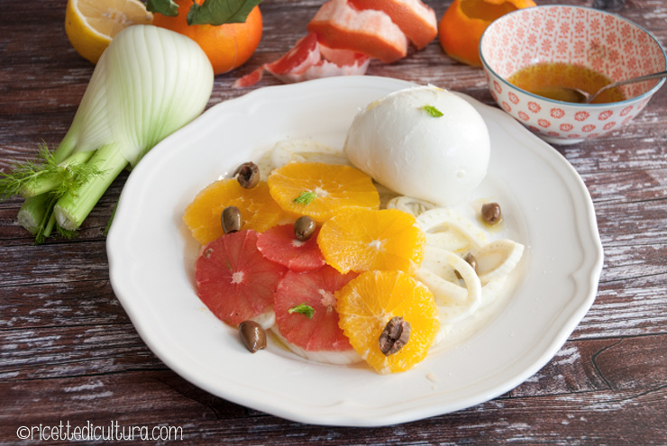 Mozzarella di bufala con insalata di agrumi e finocchio Un goloso abbinamento per portare in tavola la mozzarella (o la burrata)