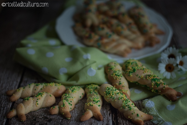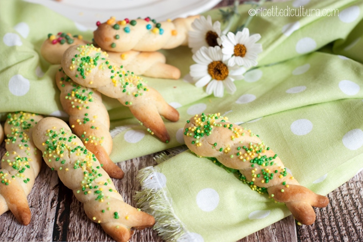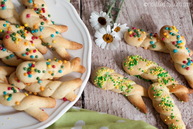 Vengono spennellati con uovo, per renderli lucidi e infine decorati con zuccherini colorati, ma un tempo erano cosparsi di semini di sesamo.