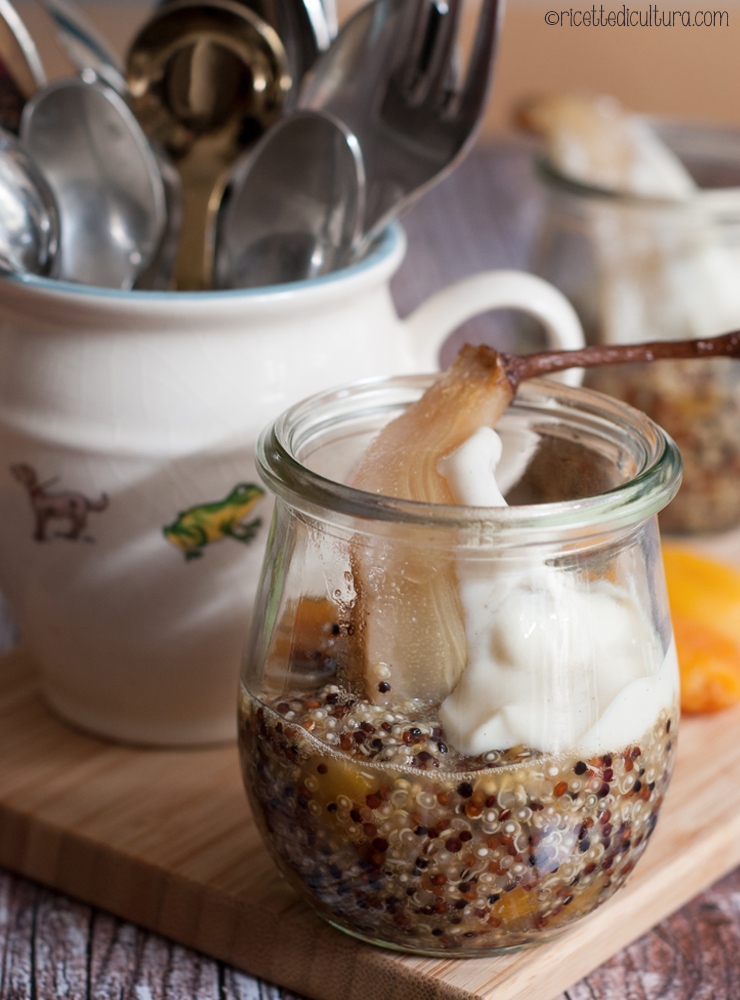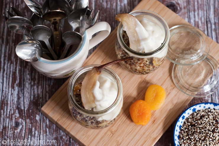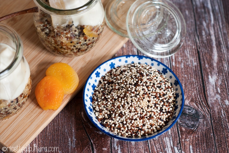Nella ricetta ho usato anche una composta di albicocche, poco dolce, ma perfetta per dolcificare la quinoa.