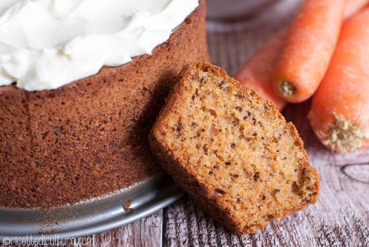 La glassatura in superficie è ottenuta semplicemente con formaggio cremoso e zucchero a velo, omettendo il burro indicato nella ricetta originale. Se preparate la torta per la colazione la glassa si può tranquillamente omettere, ma se la presentate come dessert allora conferisce quel qualcosa in più, davvero con il minimo sforzo!