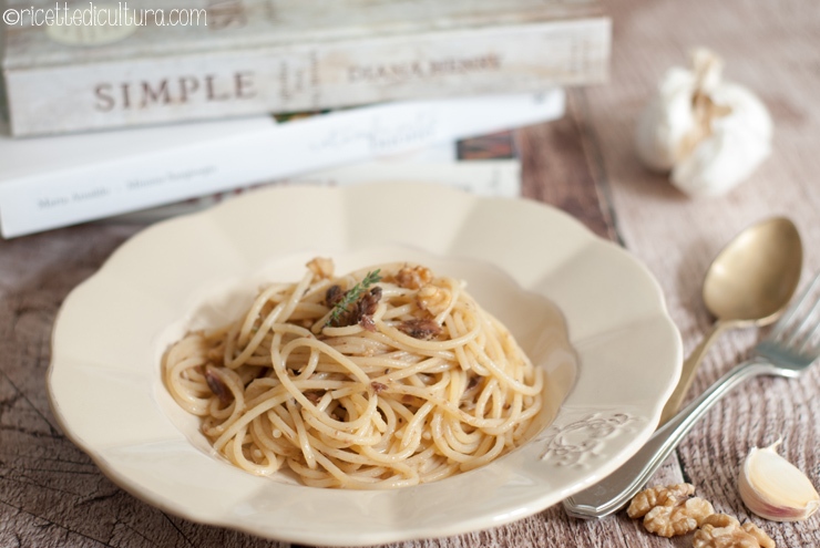 Gli spaghetti con acciughe e noci sono deliziosi, dal gusto particolare, sicuramente un po’ insoliti, diversi da burro e alici e diversi dalla salsa di noci. Però, in linea con il tema del libro, semplicissimi e accessibili a tutti.