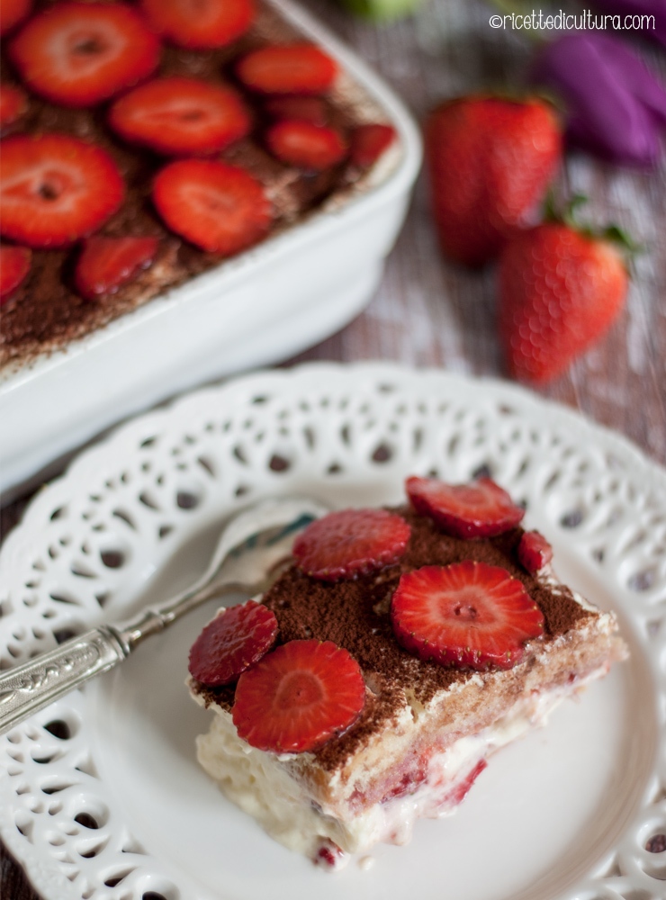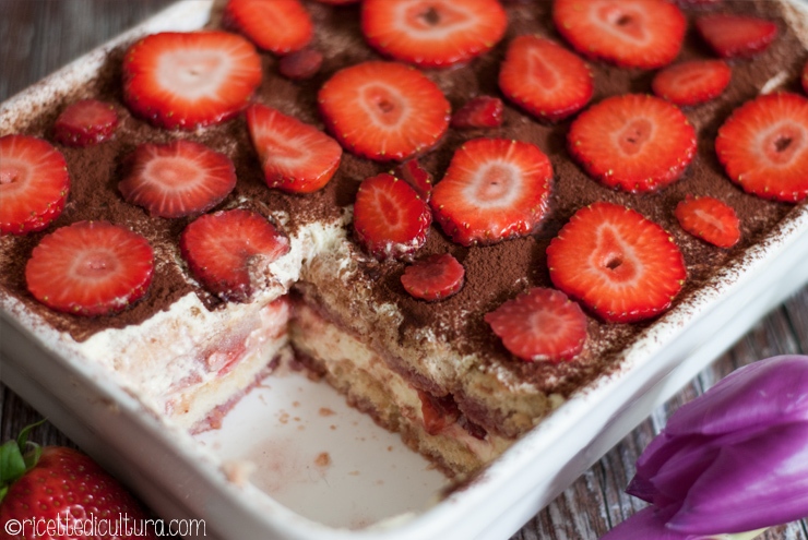 Di solito preparo questo dolce sempre nella sua forma più classica, ma questa volta ho voluto cambiare, forse complice questa primavera che tarda ad arrivare e che ci fa venire voglia di portare in tavola cose più fresche: tiramisù alle fragole.