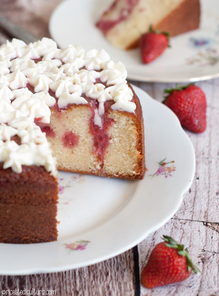 Naturalmente una volta assimilata la dinamica si può procedere sulle proprie gambe… La base pronta è diventata una semplice torta allo yogurt simile alla sette vasetti, ma con più yogurt in proporzione. La farcitura invece, complici le ultime fragole un po’ bruttarelle, l’ho preparata come una composta di frutta, dal retrogusto di limone, fresca e appena pungente.