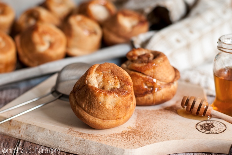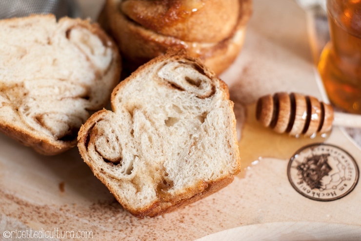 Un dolce simile, in formato gigante, viene farcito con uva passa ammorbita nel rum. Qui invece la fanno da padrone il miele e la cannella che uniti al burro dell’impasto fanno sprigionare dal forno un profumo divino.