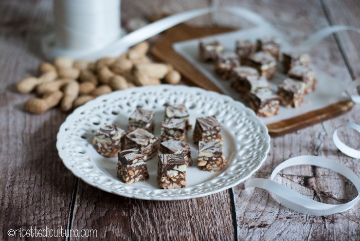 Cubetti ai tre cioccolati e arachidi Golosi cioccolatini alle arachidi da regalare o da regalarsi