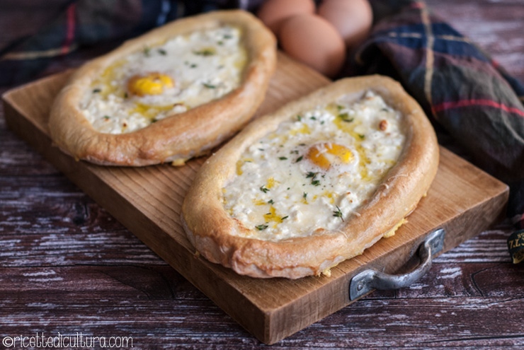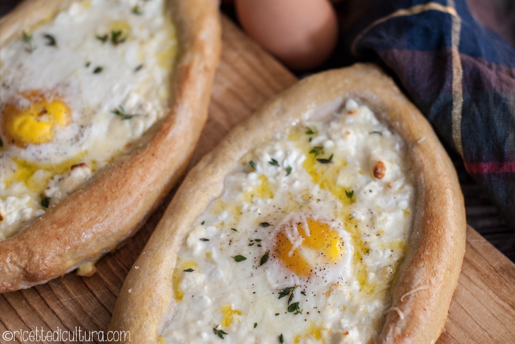 Mi sono innamorata della forma di questa focacce tipiche, i khachapuri georgiani, ripieni di formaggio e uova, un vero tripudio in cui fare scarpetta con i bordi soffici.Come spesso accade la forma di queste focacce ha attirato la mia attenzione su pinterest, visto che sono davvero fotogeniche e golose a prima vista. Devo dire che sono stata attirata anche da quel bordo a rilievo che mi ricorda quello della piazza con il cornicione.