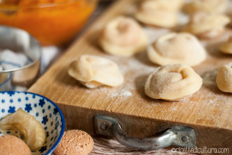 Già anni fa avevo proposto sul blog i tortelli di zucca e amaretti, ma nel rifarli non sono riuscita a trattenermi dal fotografare nuovamente questi piccoli scrigni di gusto.