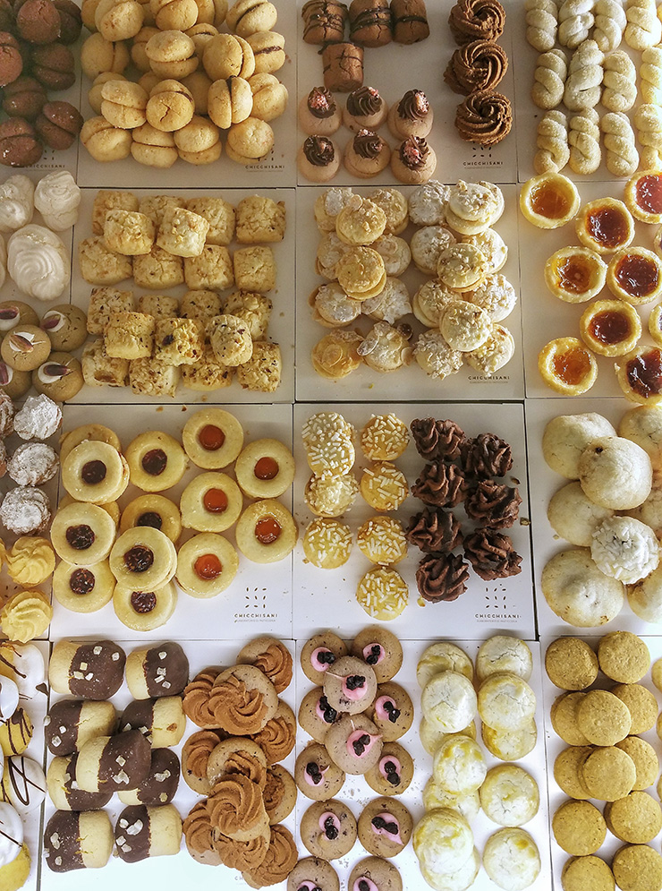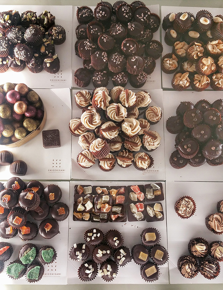 L’offerta della pasticceria copre tutti i momenti di golosità della giornata: l’elaboratorio Chicchisani è infatti aperto dall’ora di colazione a quella di cena; offre la possibilità di fare colazione anche con l’accompagnamento di un caffé e soddisfa l’ora dell’aperitivo con golosissimi biscotti salati e tartine e una selezione di vini in bottiglia.
