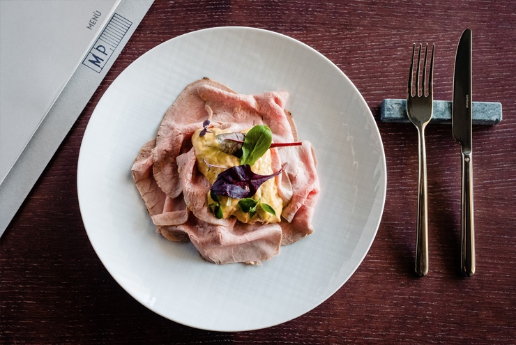 Vi ho appena parlato del Museo di Arte Contemporanea del castello di Rivoli e il parallelo mi risulta facile: da Manifatture Piol si mangia la tradizione, rivisitata con contemporaneità. Il ristorante si definisce “locanda di livello” e il livello è già percepibile negli interni, scintillanti e curatissimi con un tocco di industrial.