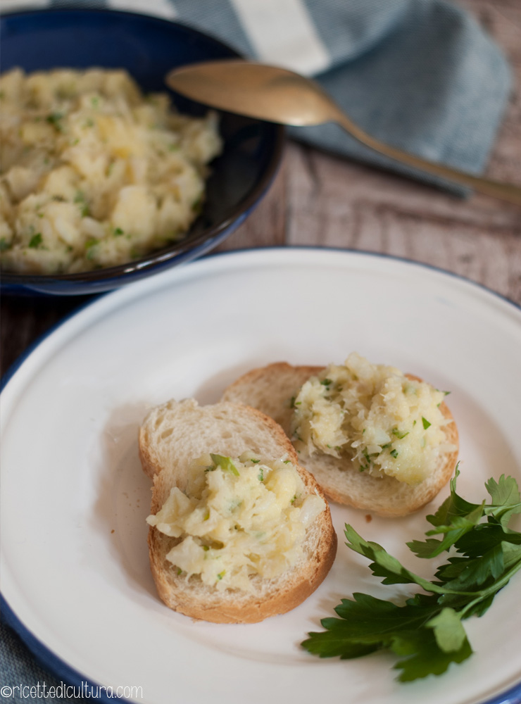 Potete aiutarvi con una forchetta per sminuzzare meglio patate e pesce che però devono ancora essere distinguibili nel risultato finale. Completate con il succo di mezzo limone e qualche zesta di prezzemolo tritato e servite tiepido su crostini di pane.