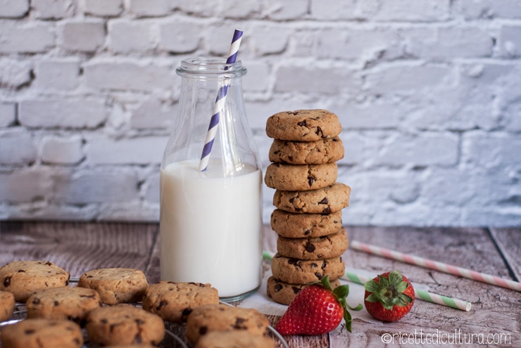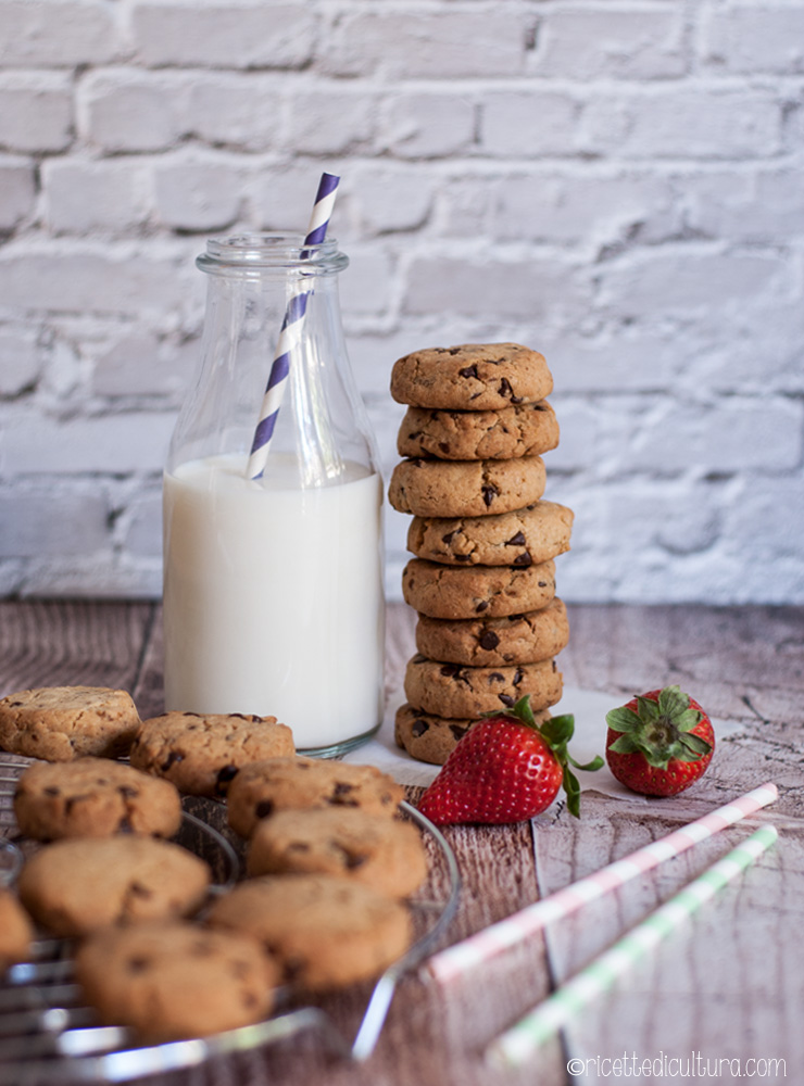 Il nome di cookies americani è assolutamente inconfondibile per identificare questo tipo di biscotti, croccanti fuori e più morbidi dentro, burrosi e ricchi di gocce di cioccolato.Per preparare questo tipo di biscotti ho seguito per anni la ricetta di Fragola e Limone, dall’equilibrio perfetto tra gli ingredienti, per biscotti che mantengono la forma in cottura.