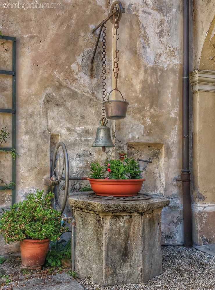 I due porticati su due lati del cortile quadrato, il carattere pittoresco dato dal pozzo o dai rampicanti. Già varcando il cortile si entra in un clima suggestivo.